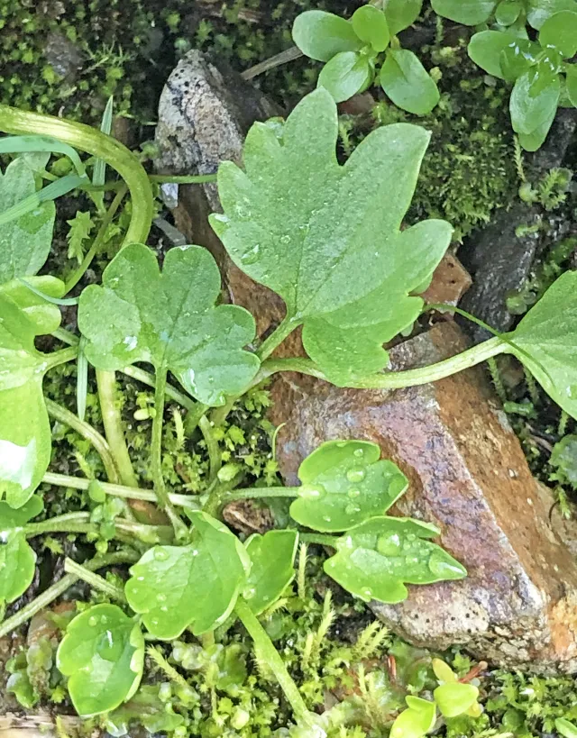 Grunnblada er tjukke og kjøtfulle, runde (eller breitt spadeforma) og med breitt kileforma eller tverr grunn. Dei er grovtanna i toppen.