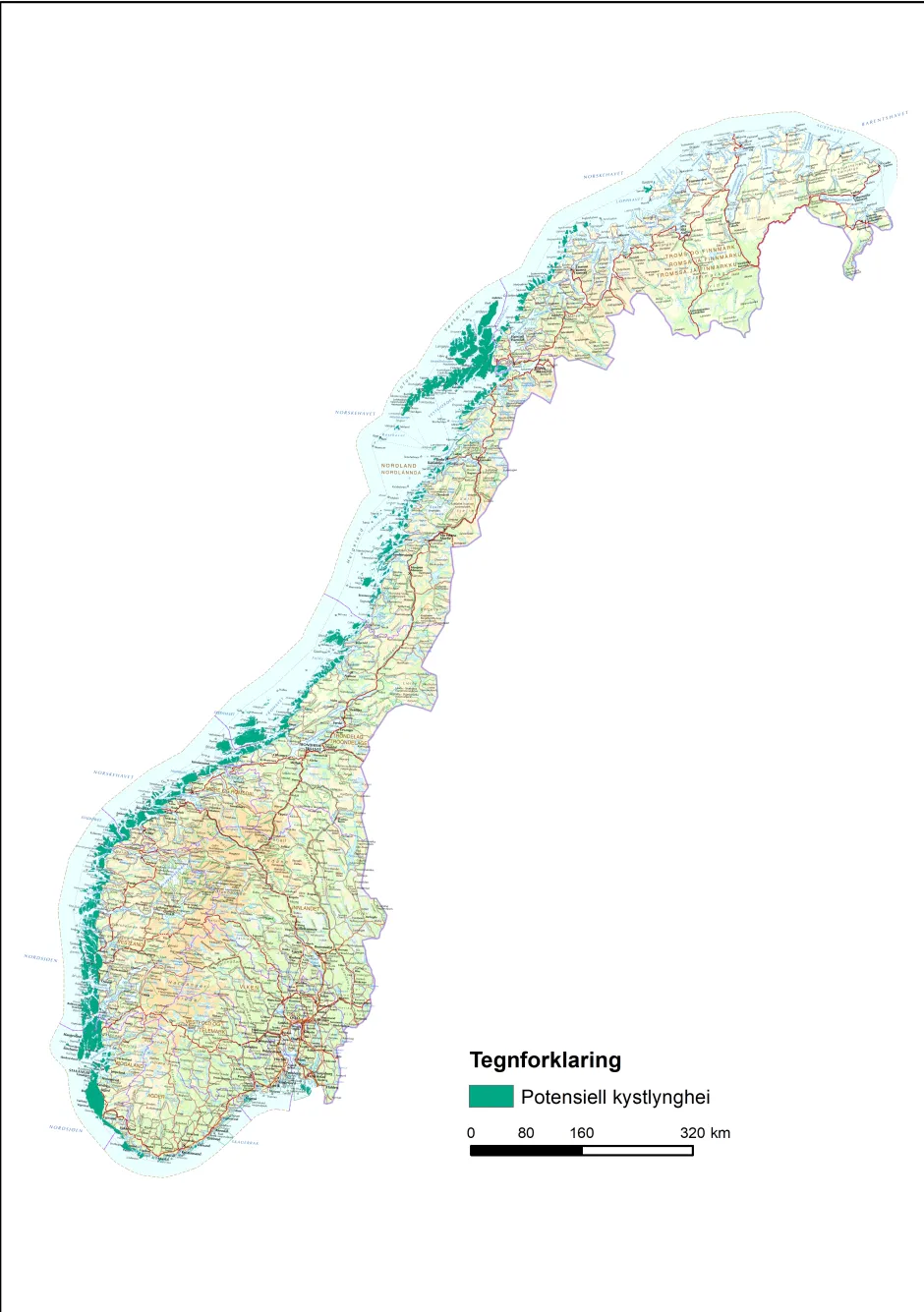 Det er laget et kart over kystlyngheias potensielle utbredelse i Norge. Det er et nyttig verktøy for kartleggere. Kartet vil også bidra til å definere kystlyngheia bedre.