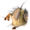 Eksempler på hodebygning hos mygg (øverst) og fluer (nederst). Merk variasjonen i antennenes og munndelenes oppbygning.