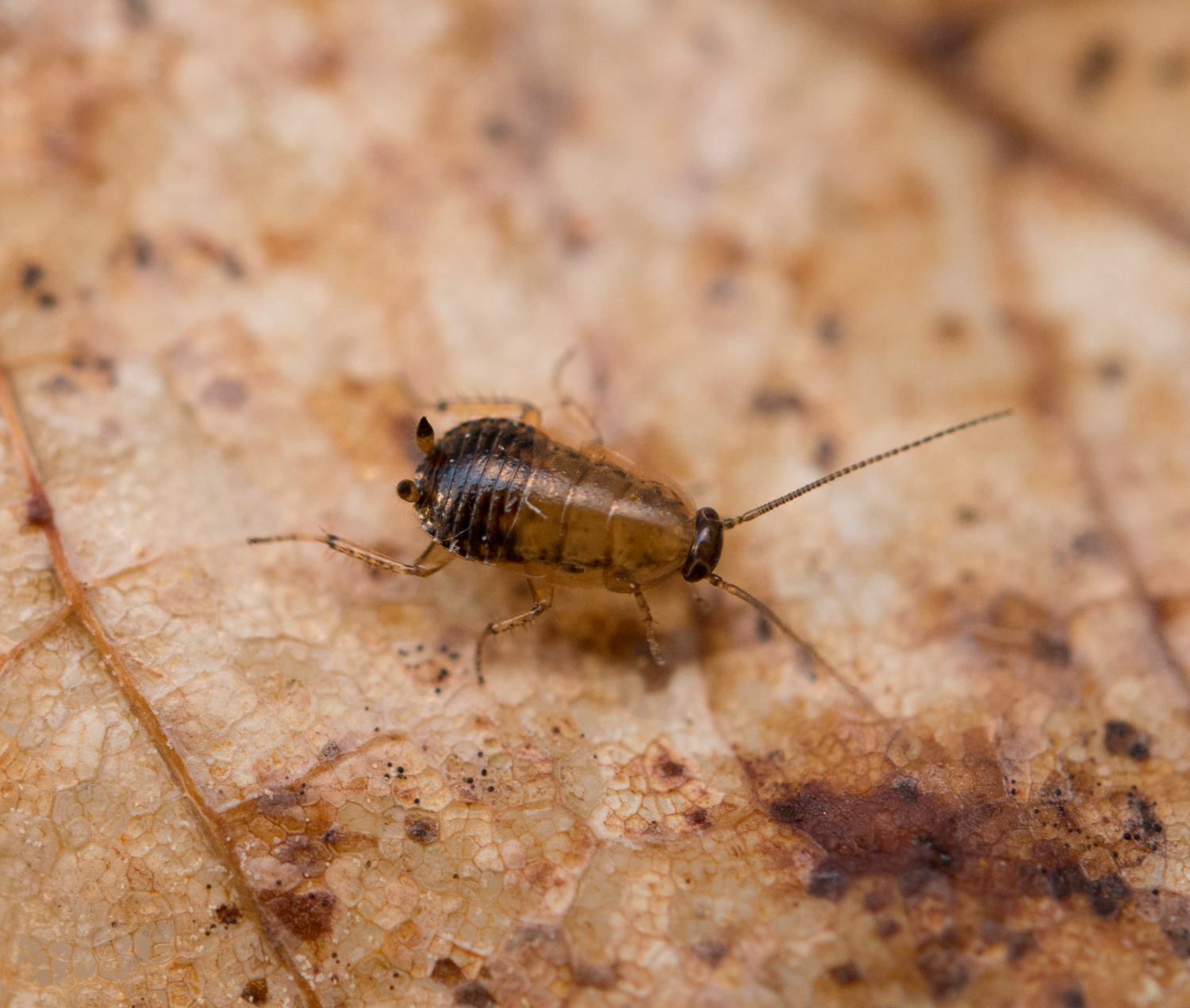 - Bakkroppen er kort og flattrykt. Begge kjønn har to mangeleddete men korte og kompakte halevedheng (cercier). Hunnen mangler eggleggingsrør.