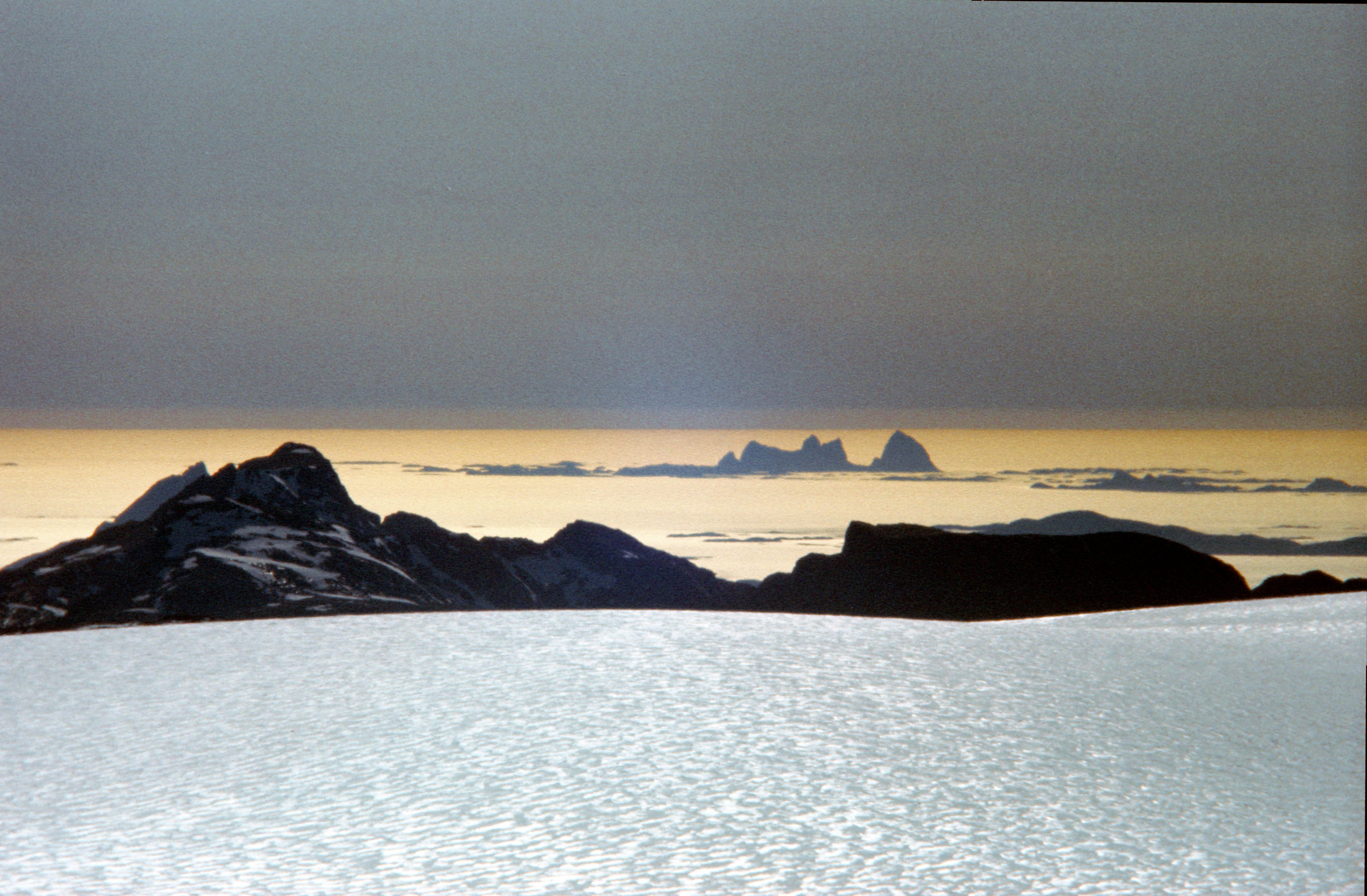 Profil fra kontinentalskråningen til fastlandet som viser terrengposisjonen og strukturen til kontinentalsokkelen (hyllen) og strandflaten langs Norges kyst (Etter T. Klemsdal 1982).