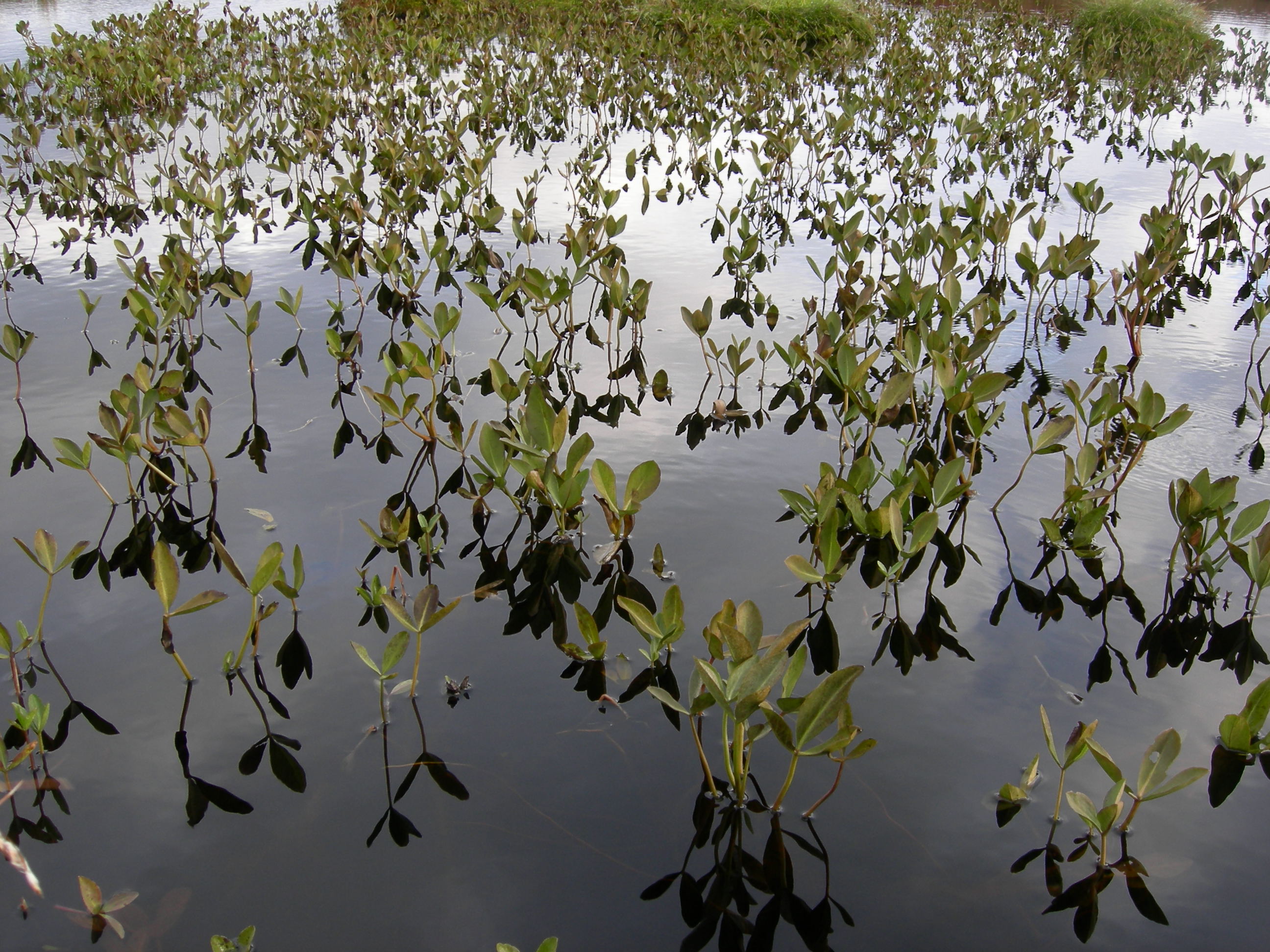 Eufotisk organisk ferskvannsbunn finnes oftest i små, grunne humussjøer (dystrofe tjern). Den vanligste grunntypen er [2] eufotisk dybunn. Innsjøen på bildet tilhører landskapsdel-typen innsjø [6] humøs kalkfattig innsjø. Den er omgitt av natursystem-hovedtypene kystlynghei og åpen myrflate. Vanndybden er bare noen få centimeter, og bunnen har spredt forekomst av bukkeblad (Menyanthes trifoliata). Førehjelmo, Hjelme, Øygarden, Hordaland.