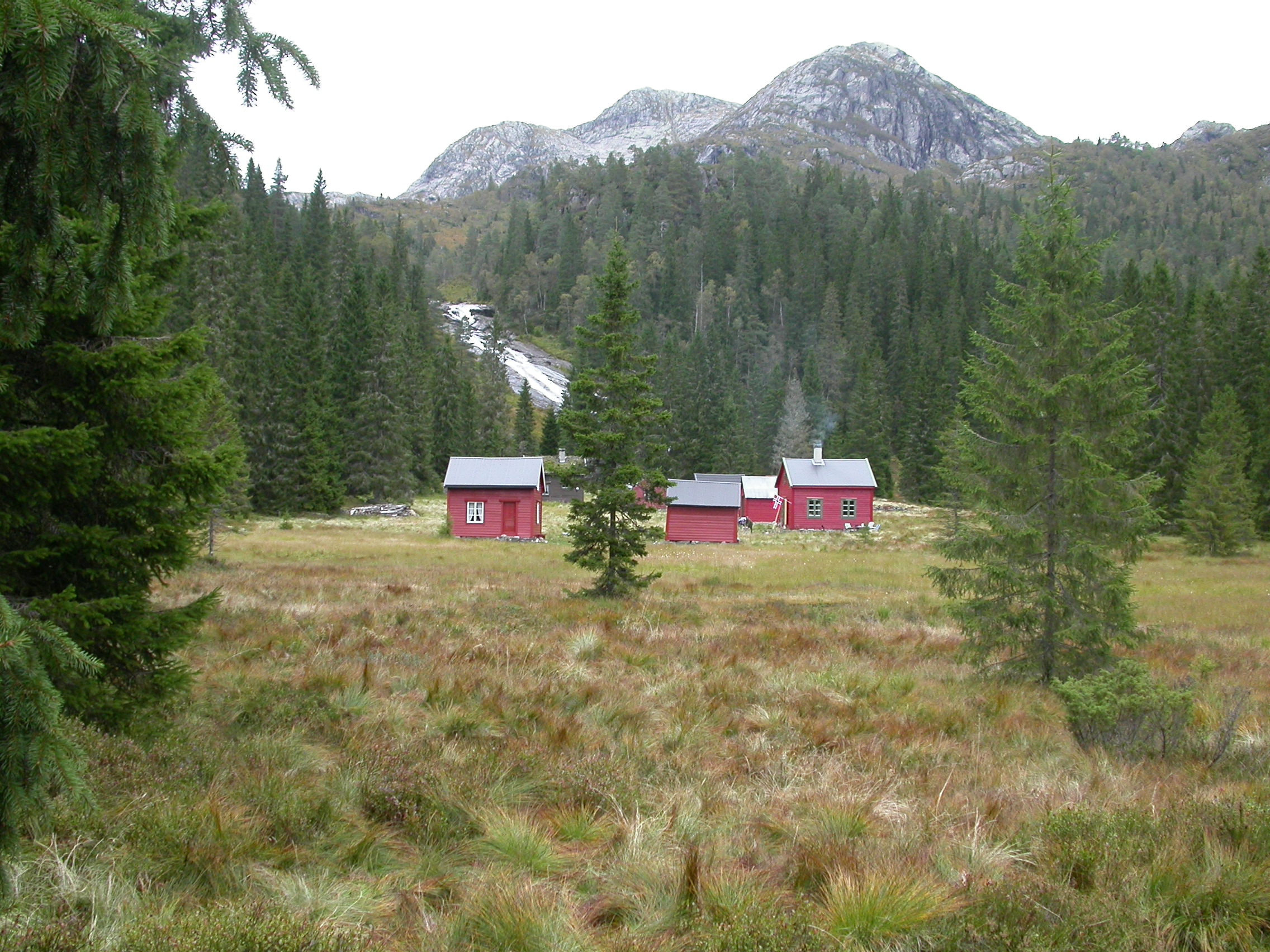Konstruert fastmark [7] gårdstun omfatter, liksom andre grunntyper for bebygde områder, stor variasjon. Bildet viser fjellgården Ormelid (Fortun, Luster, Sogn og Fjordane). Hovedbygningen er fra 1700-tallet. Bygningene er dels i tilhogd stein, dels i tre. Omkring gården kulturmarkseng, grunn-undertyper for slåttemarkseng.