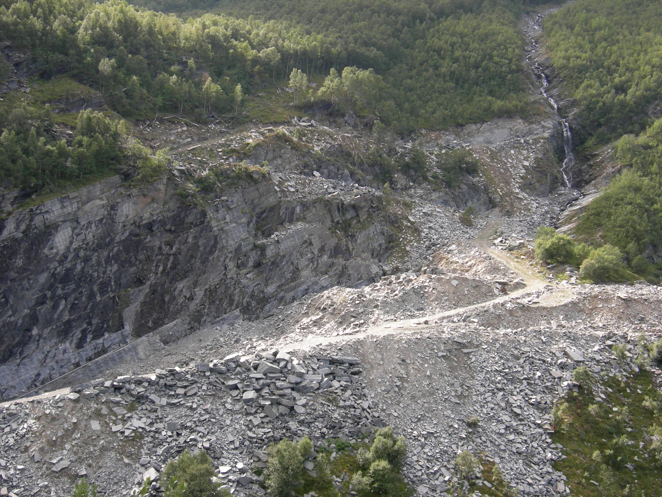 Konstruert fastmark [15] steinbrudd, eksemplifisert ved skiferbrudd S f Engan (Oppdal, Sør-Trøndelag).