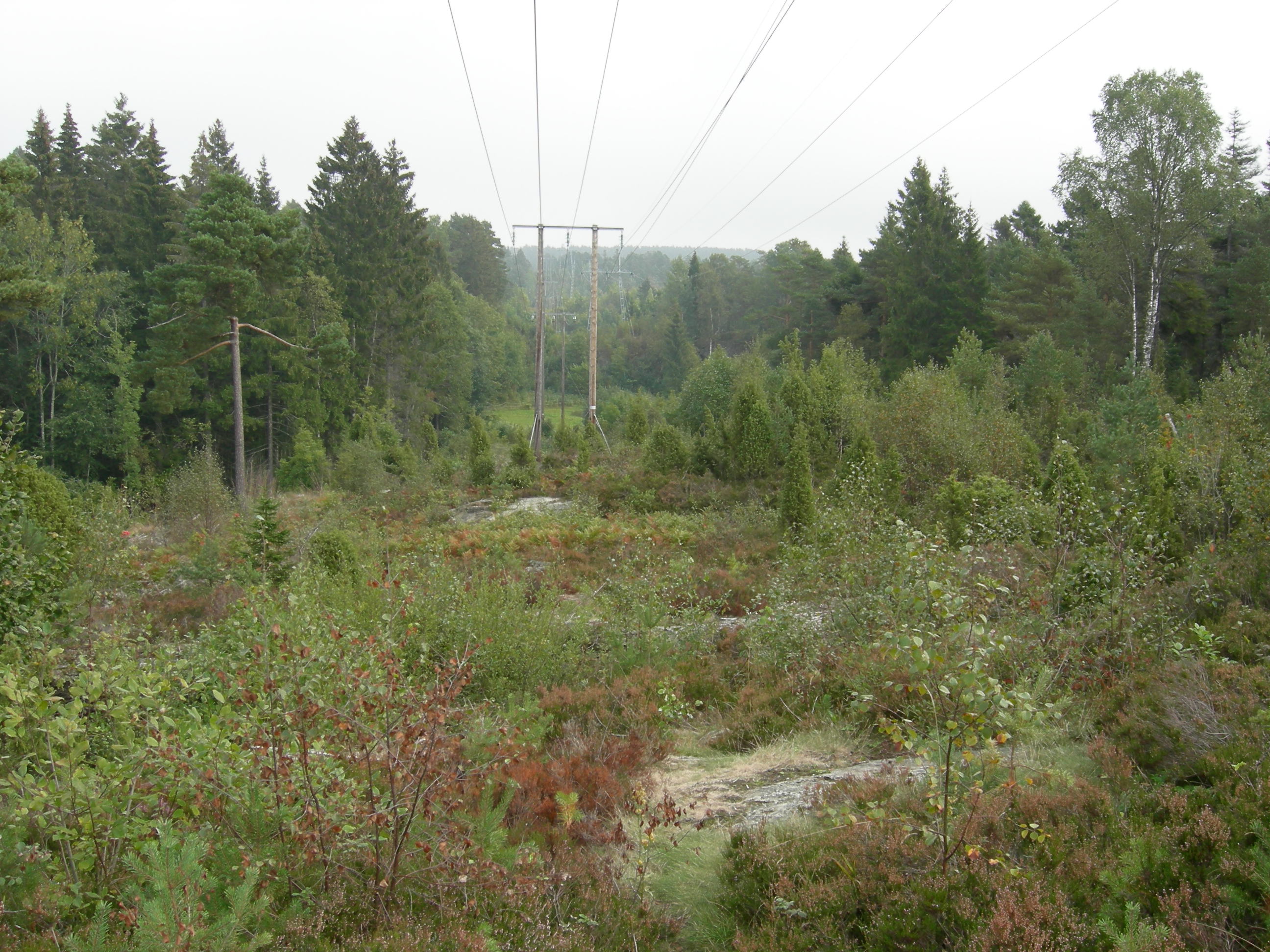 Konstruert fastmark [29] kraft- og ledningsgate [bildet er fra kambrosiluren i Grenland (Jyplevik, Langesund, Bamble, Telemark)] huser ofte en buskdominert vegetasjon med rikelig ugrasinnslag. Kraftgatene blir ofte kraftig sprøytet for å forsinke oppslag av trær.