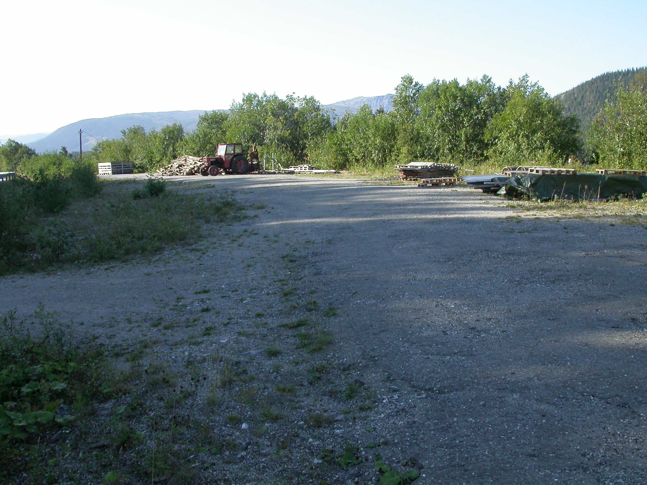 Konstruert fastmark [30] skrotemark er et samlebegrep for mer eller mindre ugrasdominert konstruert mark utenom landbruksarealene, på bildet eksemplifisert ved en nå utrettet veisving som brukes som lagringsplass, blant annet for tømmer (Kattstranda ved Finneidfjorden, Hemnes, Nordland).