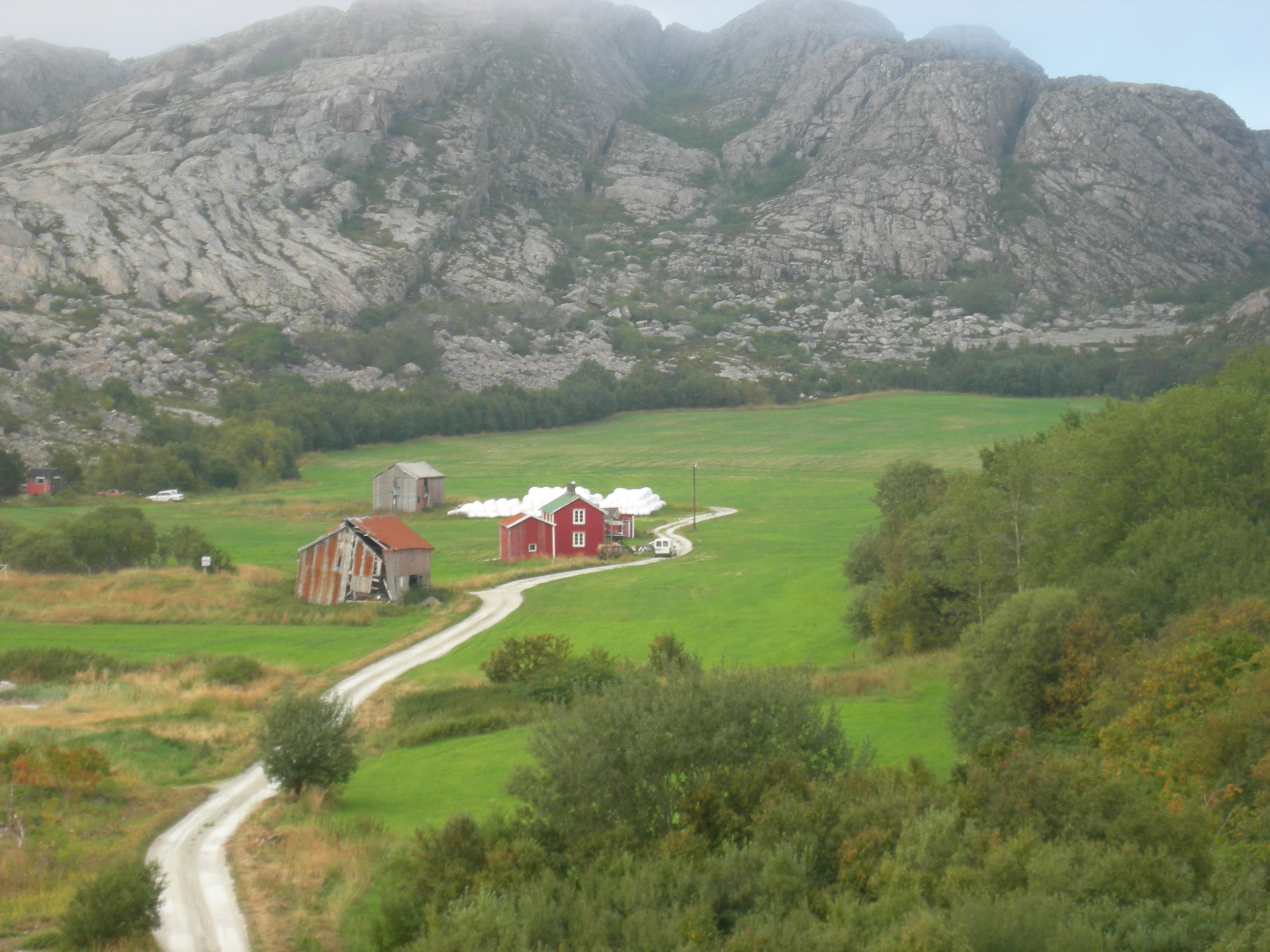 Konstruert fastmark [7] gårdstun omfatter, liksom andre grunntyper for bebygde områder, stor variasjon. Bildet viser småbruket Torgvikran (Brønnøy, Nordland), i ’fiskerbondens landskap’.