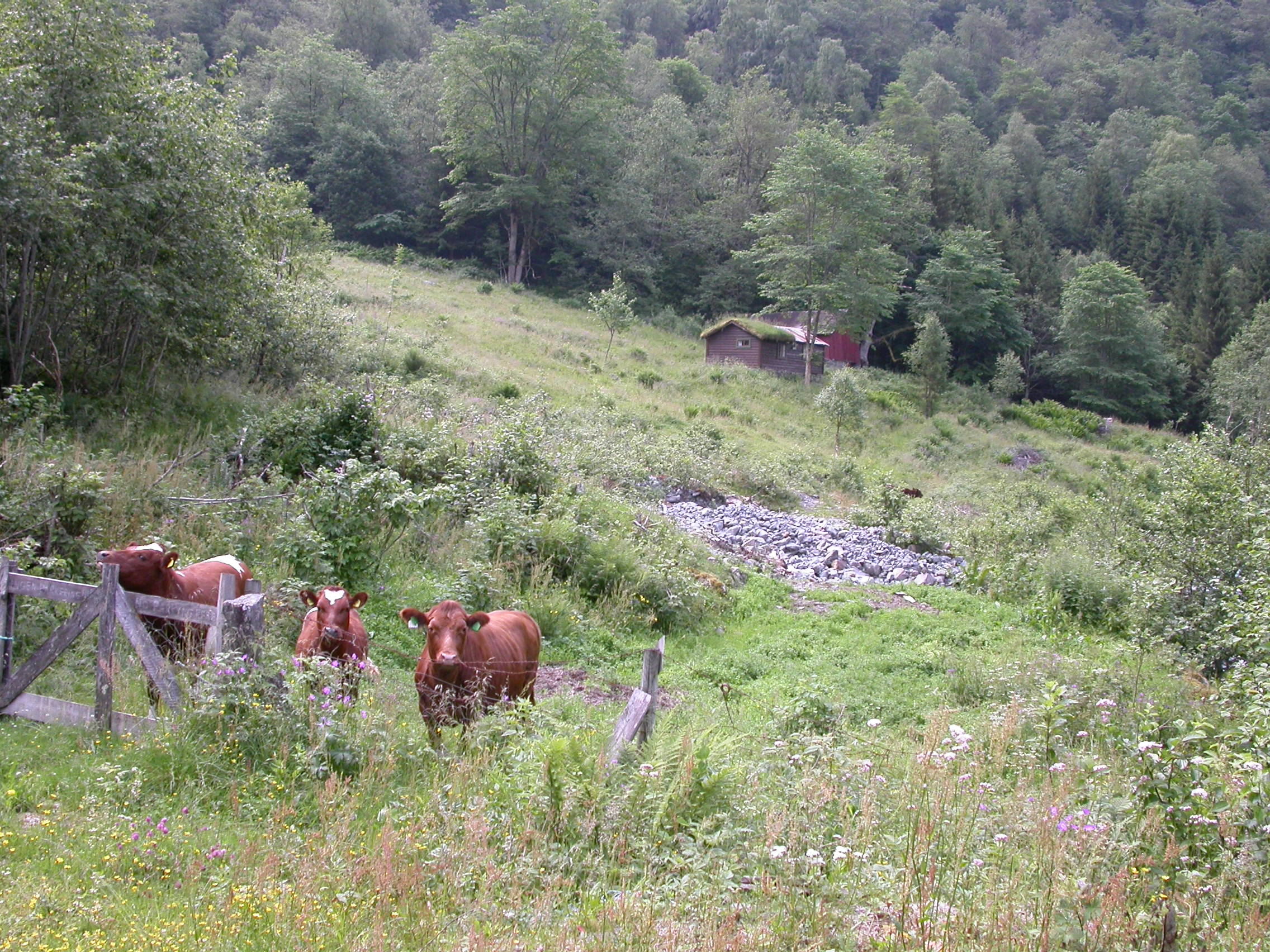 Kulturmarkseng [7.2] lågurt-beitefukteng, i mosaikk med [3.1] lågurt-beiteeng. Slike beitemarker dekker fortsatt store områder i Norge (Mørkrisdalen, Fortun, Luster, Sogn og Fjordane).