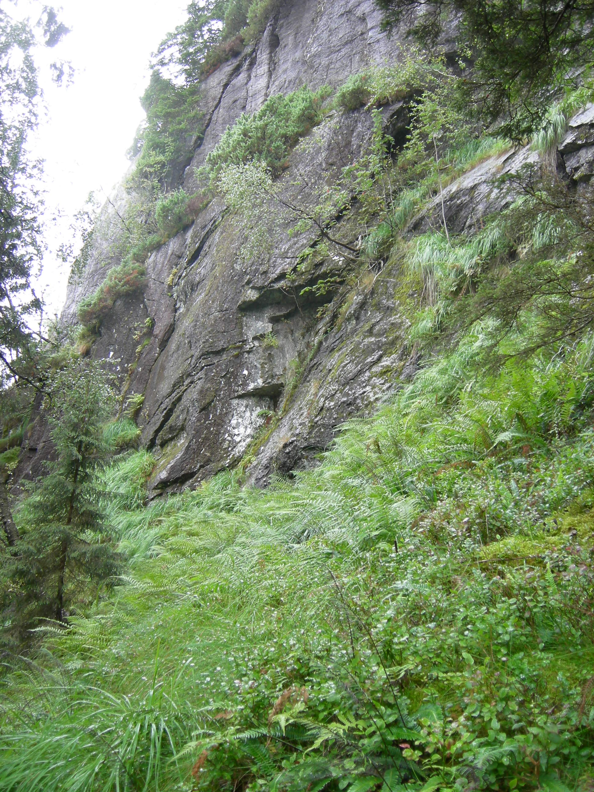 Åpen ur og snørasmark. Mosaikk av grunntypene [2] intermediær ur (koloniseringsfasen) og [8] storbregne-rasmarkfukteng (sluttet vegetasjon på steder med sigevannstilførsel) i nedre del av talus ved Bjørnstegane, Jostedal, Luster, Sogn og Fjordane.