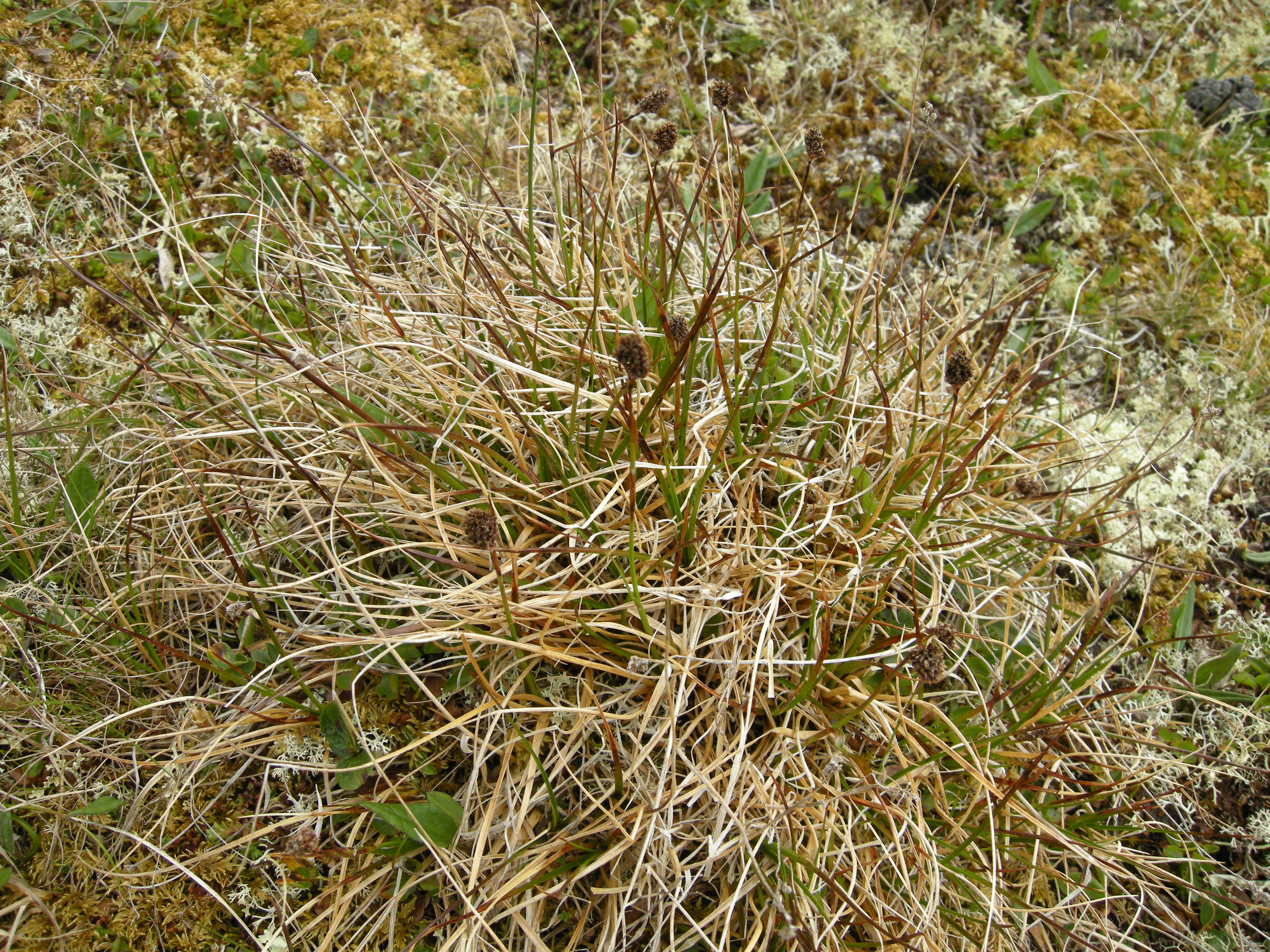 Snøfrytle (Luzula nivalis) i stabilisert, moserik frostmark og frosttundra [3] kalkfrostmark (overgang til snøleie) nord for toppen av S. Knutshø (Oppdal, Sør-Trøndelag).