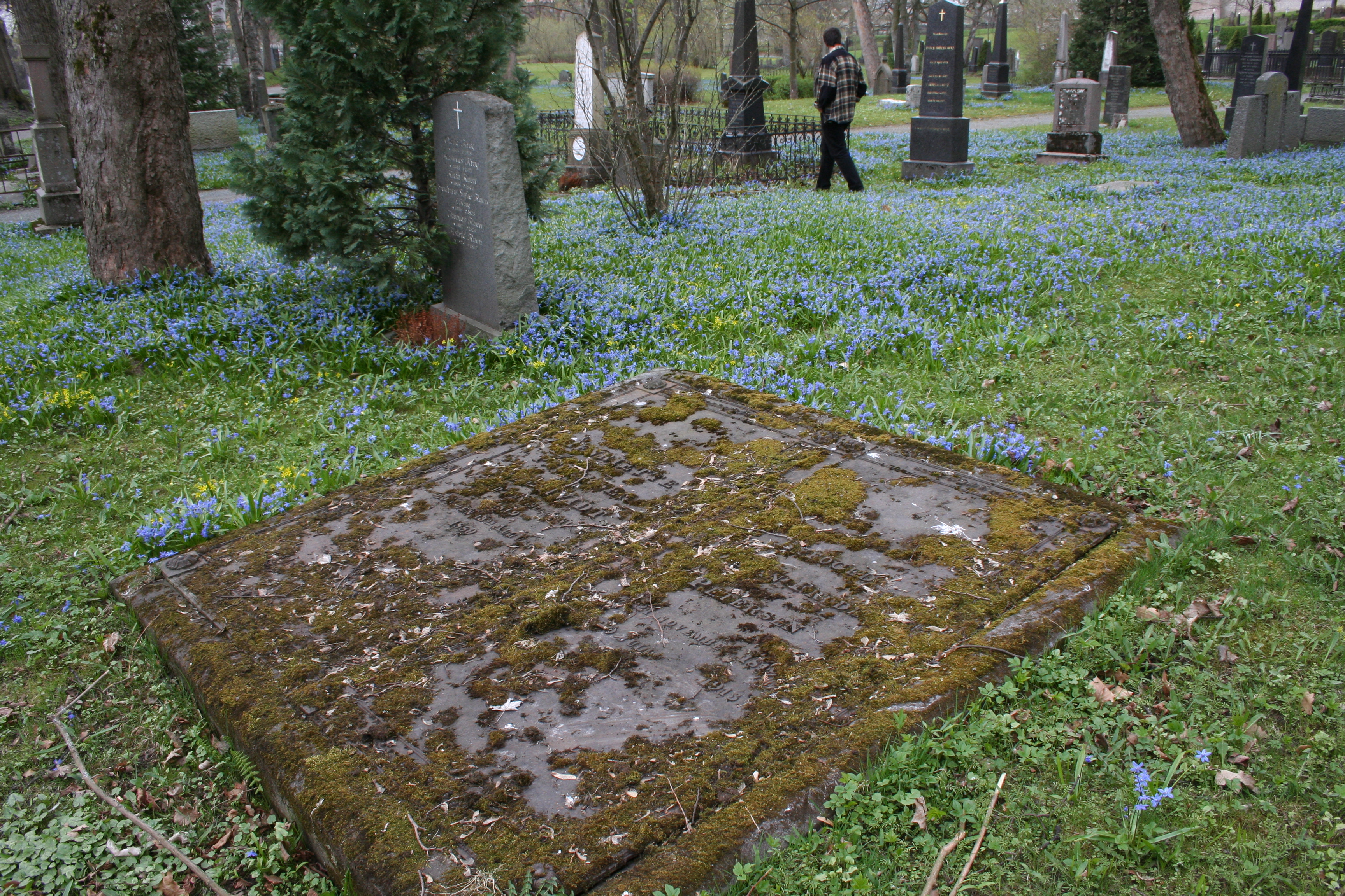 Syntetiske livsmedier på land, eksemplifisert ved gravplate i metall bevokst med moser. Nidarosdomen, Trondheim, Sør-Trøndelag.