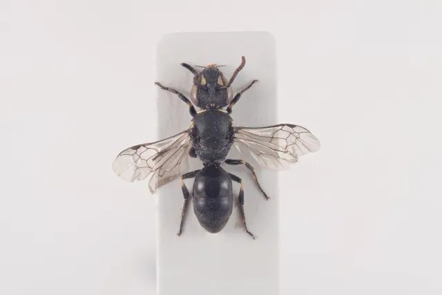 Kjølmaskebie Hylaeus hyalinatus, hunn.