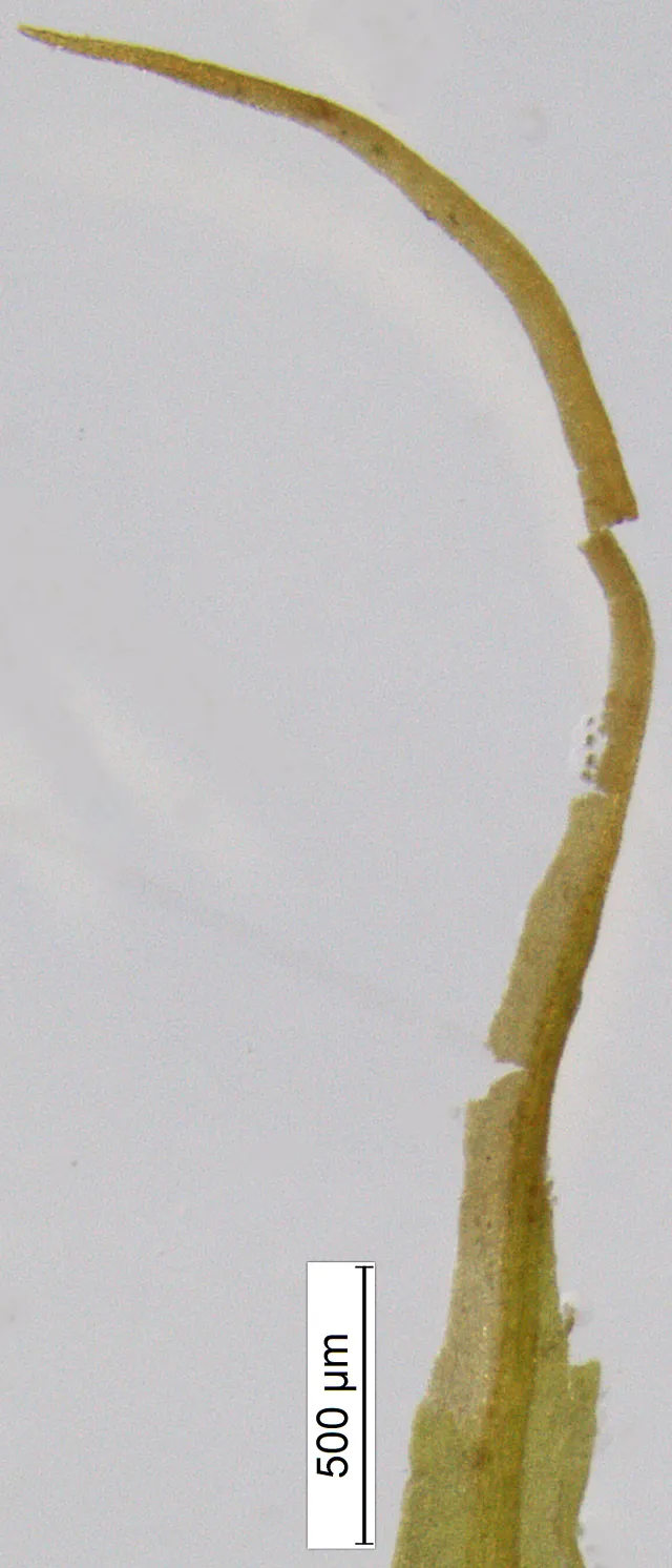 A: Bladene brekker lett. Bladfragmentene fungerer som spredningsenheter. B: Ryggsiden (dorsalt) av nerven i øvre del av bladet er dekt med papiller. C: Tverrsnitt av blad i øvre del av bladet, legg merke til papillene på nervens ryggside.