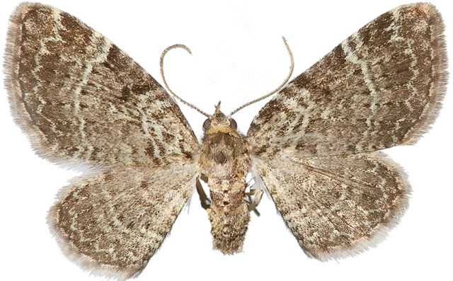 Skilles fra @(epleblomstmåler) ved at ytre mellomlinje ikke er vinklet nær framkanten.