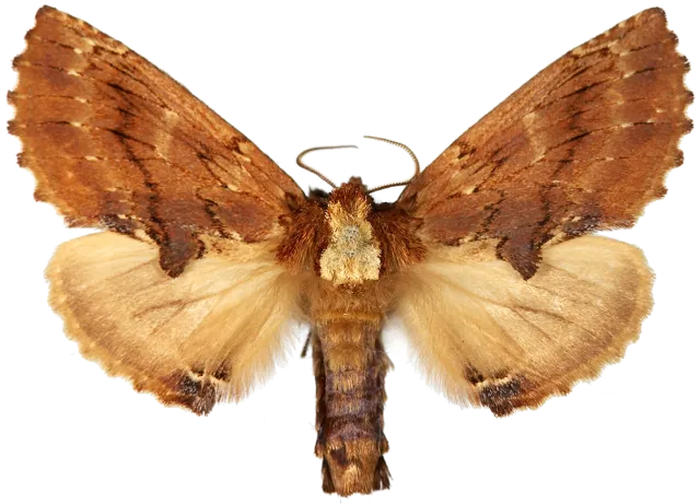 Larven lever på bjørk (@(Betula)) og @(Salix)-arter (selje, vier, pil), men også andre løvtrær som @(osp) or (@(Alnus)), @(hassel), @(bøk) og eik (@(Quercus)).