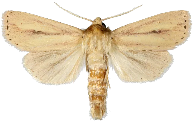 Skiller seg fra @(irisrørfly) ved å ha tydelige svarte punkter innenfor framvingens frynser, og ved at nyremerkets nedre kant er markert som en lav u.