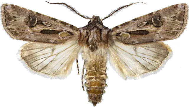 Larven lever på ulike urter. Nattaktiv, skjuler seg i sanden/grusen om dagen.