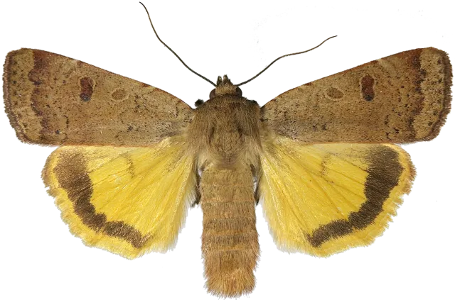 Spissen av framvingen verken med mørk skygge eller svart plett.