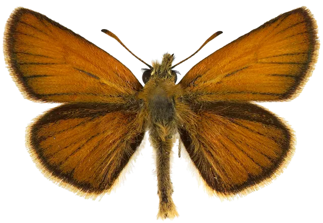 Begge vingepar er gulbrune med brunsvart bestøvning langs ytterkanten og på ribbene. Frynsene er gulhvite. Hos hannen har framvingen en smal, svart duftskjellstrek.