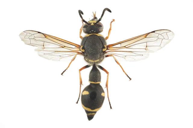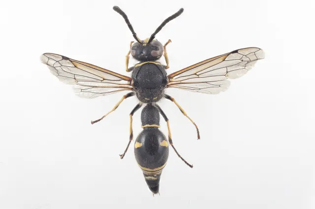 Hann av blank krukkeveps Eumenes pedunculatus.