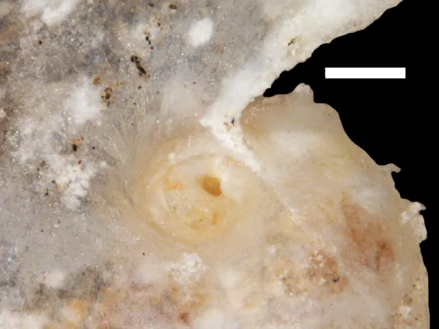Skallets apeks. Målestokk = 250 µm.