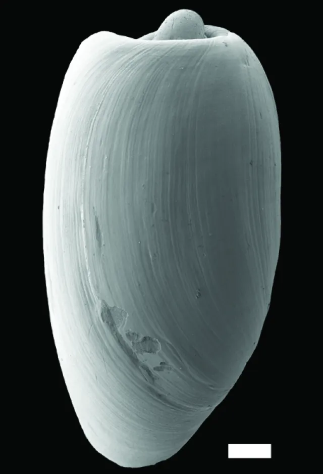 Skallets apeks (automontage bilde) målestokk = 250 μm.