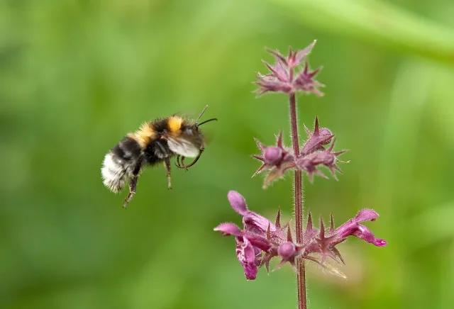 Dronning av hagehumle Bombus hortorum på storengkall, Rakkestad i Østfold.