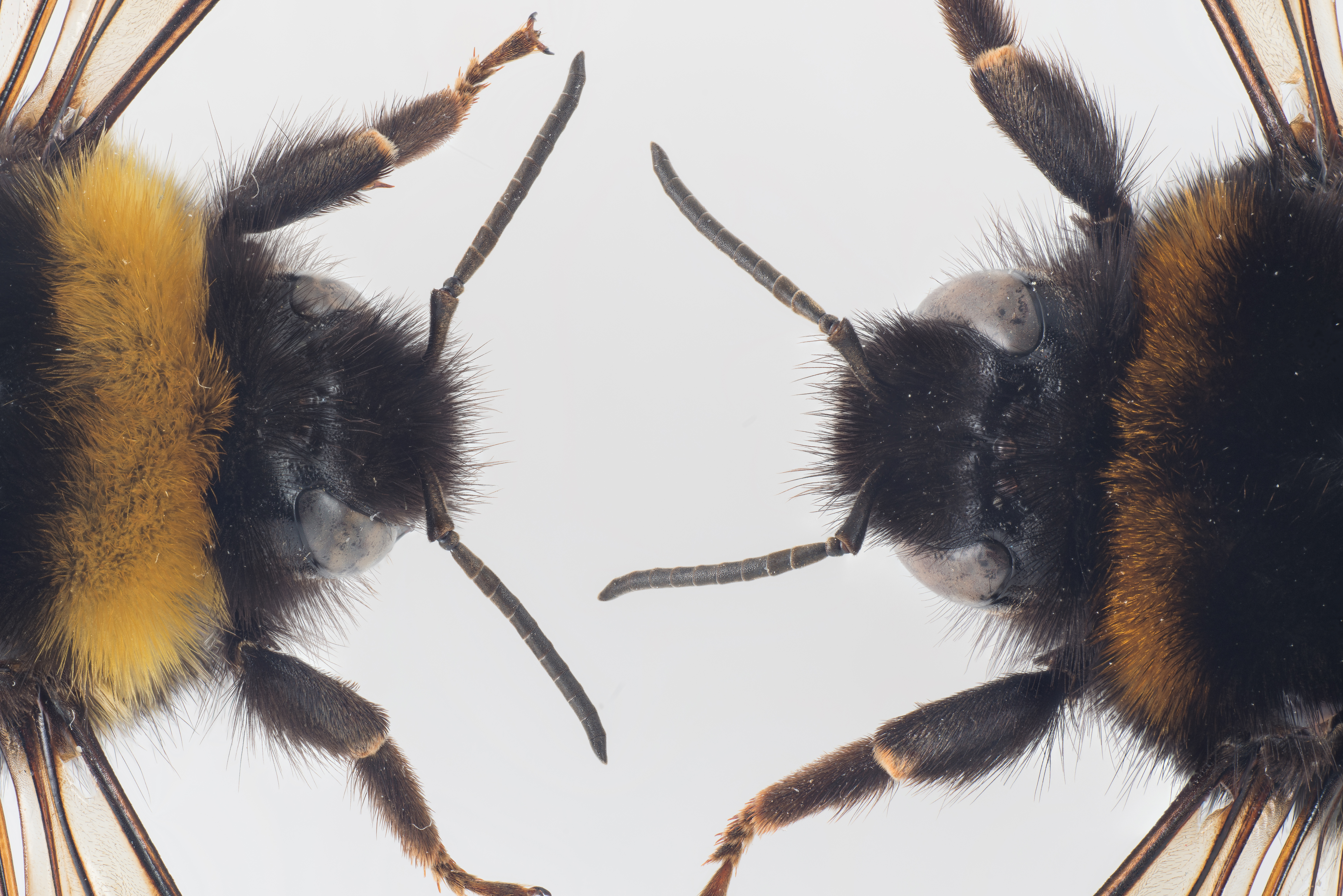 Dronninger av lys jordhumle Bombus lucorum (venstre) og mørk jordhumle Bombus terrestris (høyre).