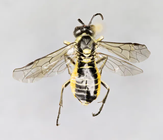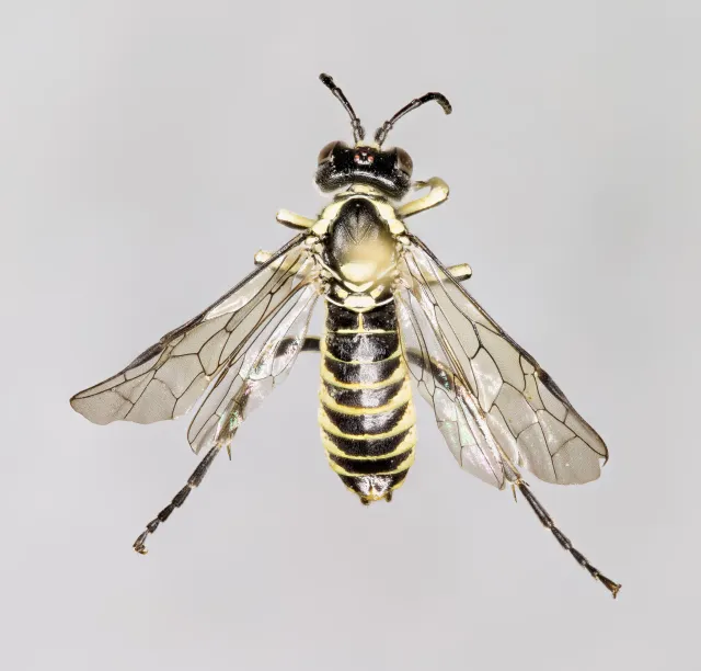 Tenthredo mioceras hunn, sett fra siden. Spjeldsetmyra, Tinn, Telemark, Norge. 27.06.2012. Leg. Ole J. Lønnve.