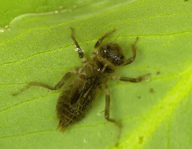 Nymfe av småblålibelle Orthetrum coerulescens.