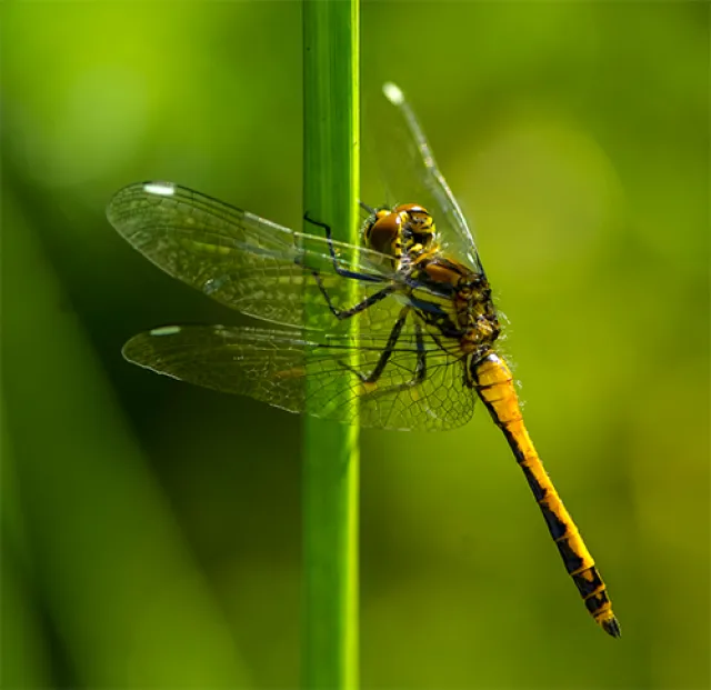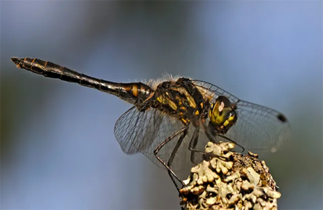 Ung hann av svarthøstlibelle Sympetrum danae. Unge hanner har samme lyse fargetegninger som hunnen.