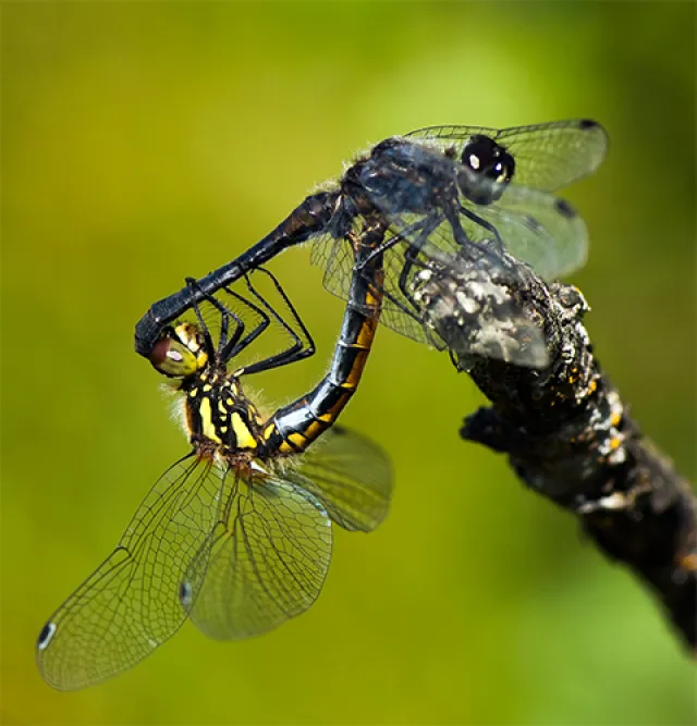 Svarthøstlibelle Sympetrum danae i paring. Hannen øverst.