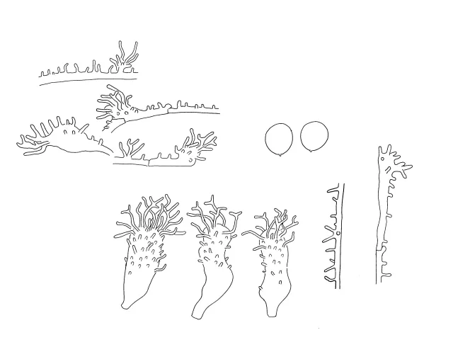 Hatthudshyfer, sporer, cheilocystidier, stilkhudshyfer med caulocystidium.