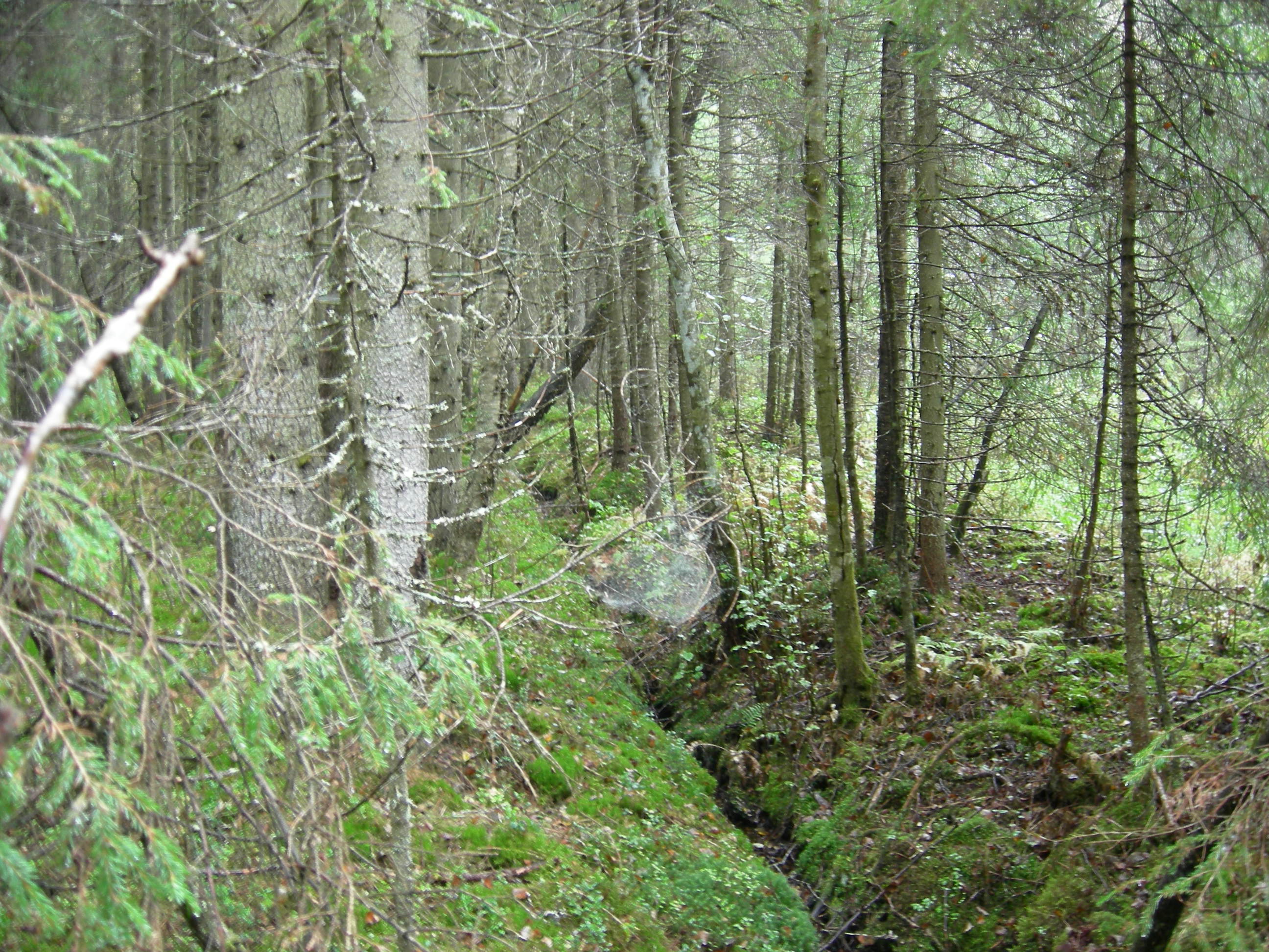 Gammel grøft, Deliseterbrakka i Østmarka naturreservat, Enebakk, Akershus.
