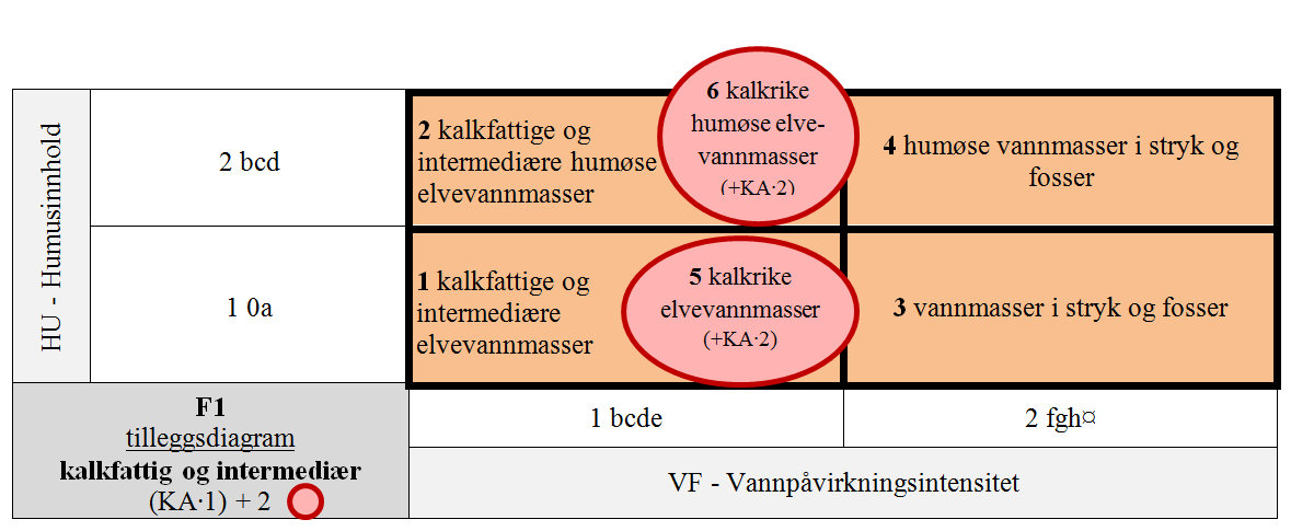 Framlegget til inndeling tar utgangspunkt i, og er kompatibel med, inndelingen i elvetyper i henhold til Vanndirektivets typologi (VRD; Solheim & Schartau 2004, Anonym 2013), men avviker fra denne på følgende punkter som resultat av tilpasning til reglene for hovedtypetilpasset trinndeling av LKM: