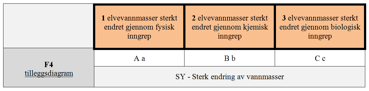 Omfatter elvevannmasser i vannforekomst som blir klassifisert som sterkt modifisert i henhold til Vannveilederen (jf. Vannrammedirektivet; Anonym 2013). Begrepet sterkt modifisert vannforekomst er definert som «forekomst av overflatevann som på grunn av fysiske endringer som følge av menneskelig virksomhet i vesentlig grad har endret karakter, og som er utpekt som sterkt modifisert i medhold av Vannforskriften § 5.»