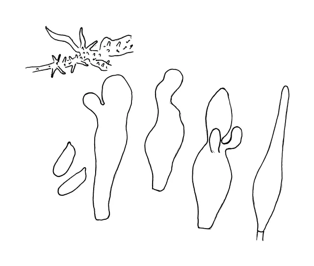 Hatthudshyfe, sporer, cheilocystidier og caulocystidium.