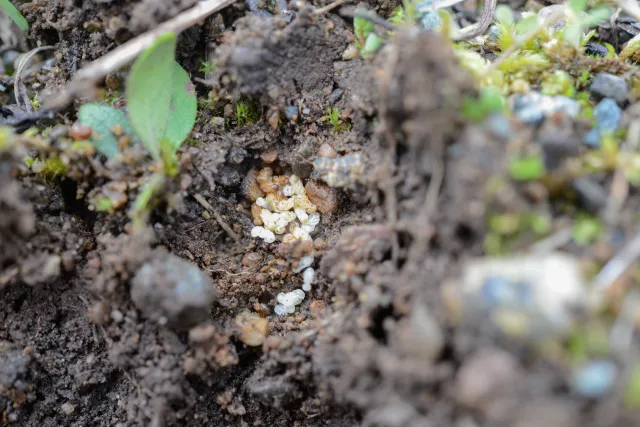 Arten trives best på tørr mark med mye sand og grus i jorda og lite markvegetasjon. De norske funnene av kolonier er gjort på hardpakket morenegrus med spredt engvegetasjon. Det er også funnet svermende dyr i utkanten av et sandtak, men arten etablerer seg ikke i steril sand.