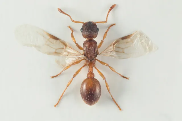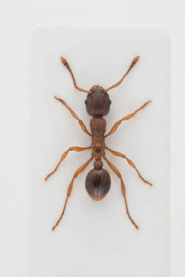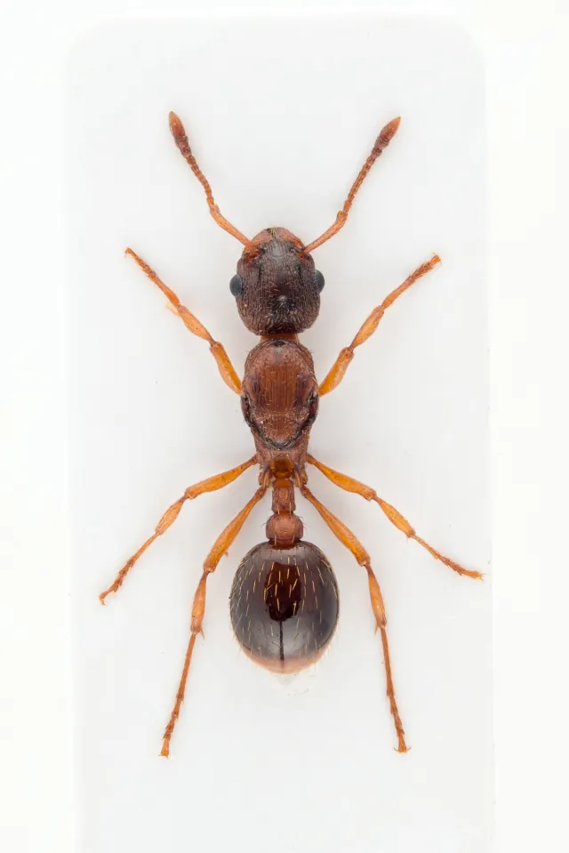 Arbeider av småeitermaur Myrmica rugulosa, fra siden.