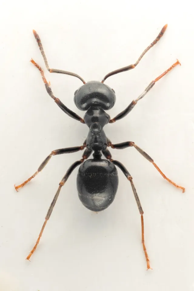 Arbeiderne har ellers mørke bein med lysere tarser. Petiolen er relativt tykk sett fra siden og smal uten innbuktning i overkant sett bakfra.