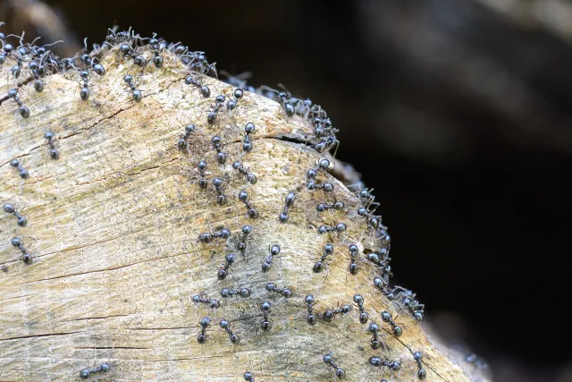 Arbeidere av svart tremaur Lasius fuliginosus. Sandefjord i Vestfold.