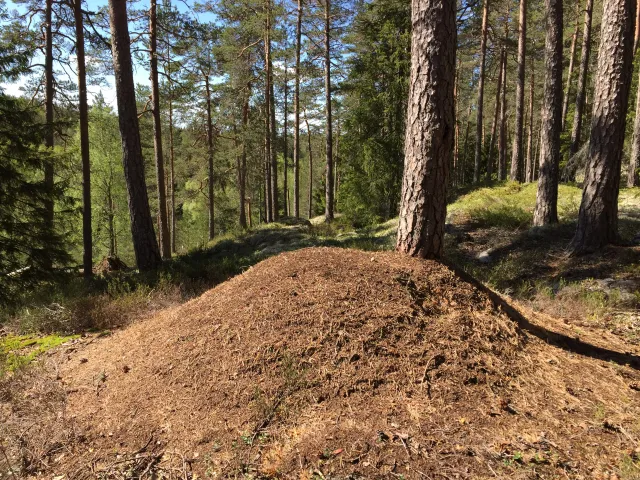 Tue av glatt skogmaur Formica polyctena.Linåsmyra, Eidsskog i Hedmark.