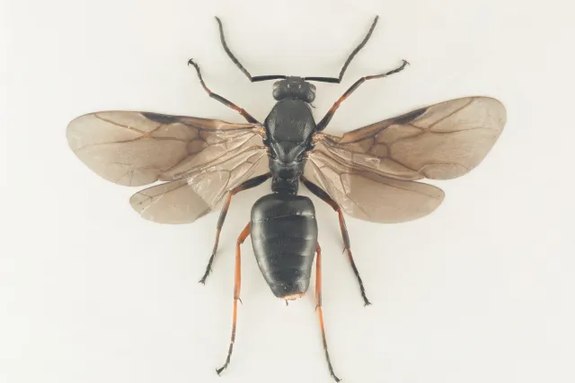 Dronningen er påfallende blank på bakkroppen da punktueringen er svak og spredt, samt at mikrochagrineringen er utydelig. Dronningen mangler, som arbeiderne, utstående hår i bakkant av hodet. Den mangler også utstående hår i bakre del av første bukledd og på framsiden av første ryggledd. Pseudogyne individer (utseendemessig mellomting mellom dronning og arbeider) finnes.