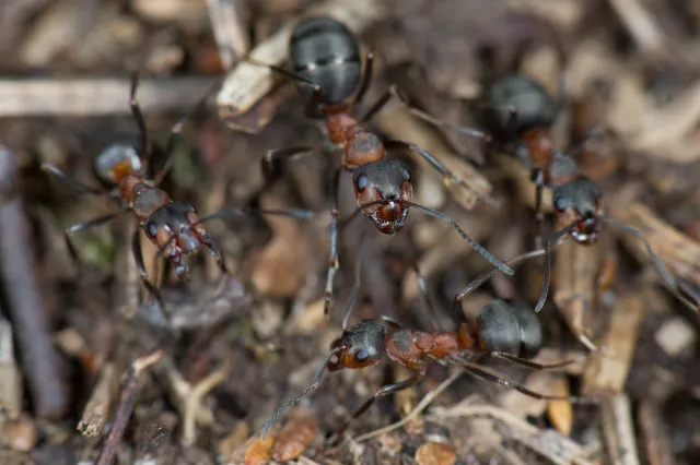 Arbeidere av glatt skogmaur Formica polyctena. Jeløya, Moss i Østfold.