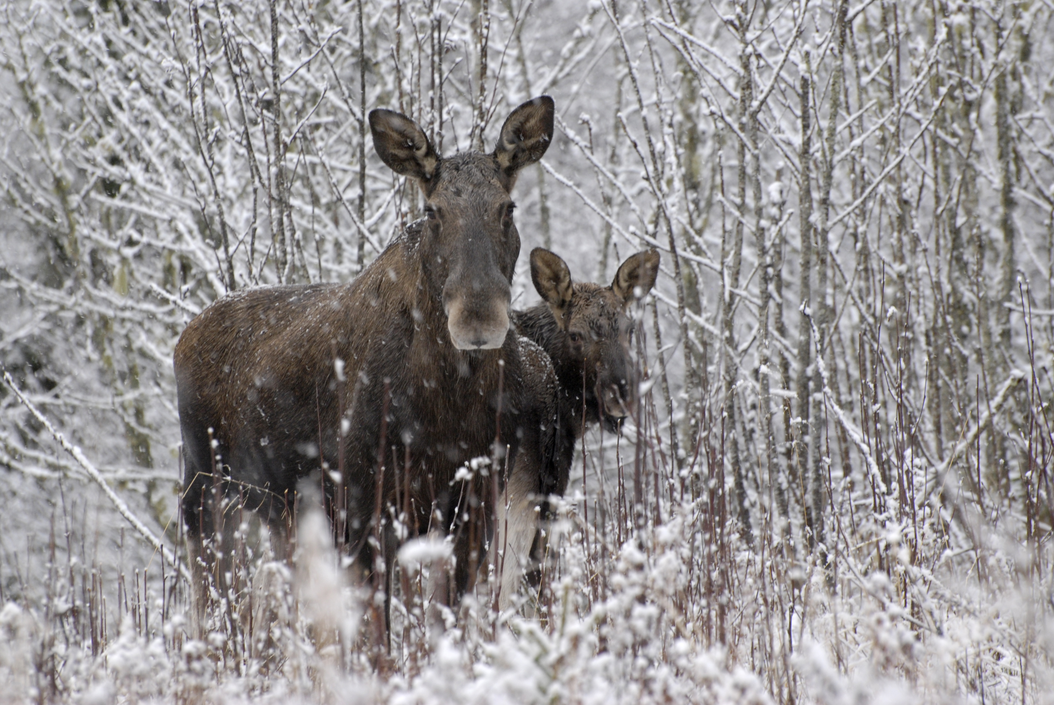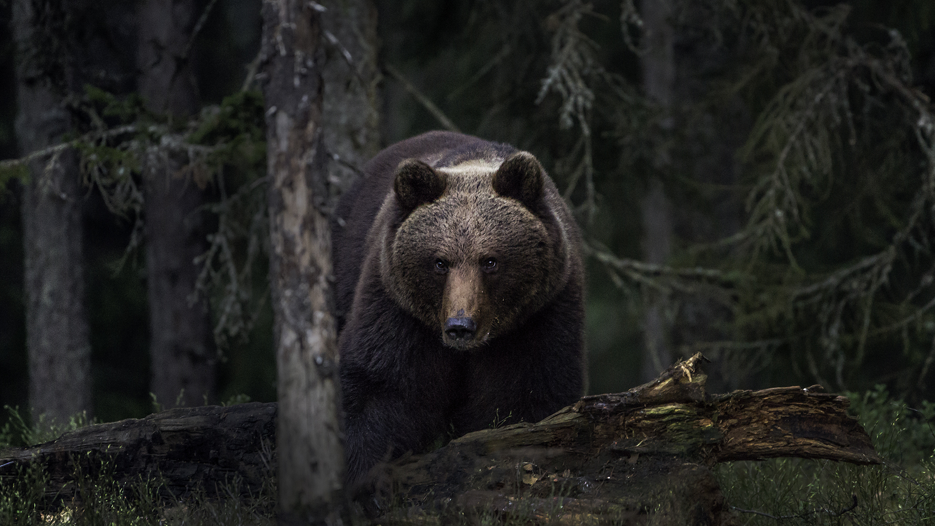 Brunbjørnen spiser både kjøtt og plantekost. Elg- og reinkalver er et ettertraktet bytte mange steder.