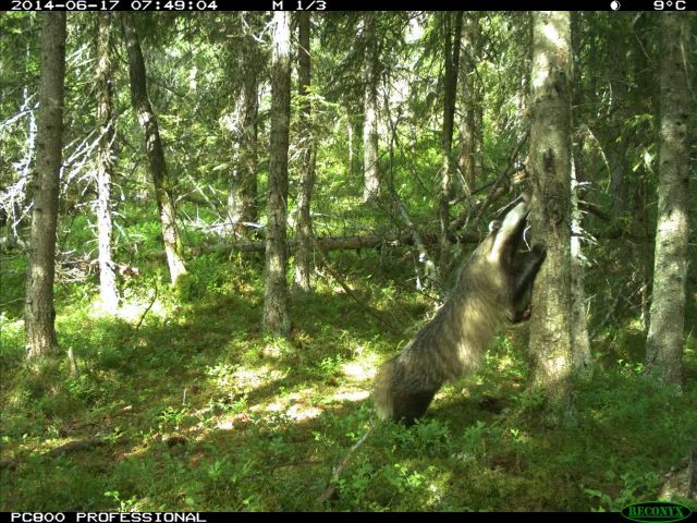 Akkurat som katten kvesser grevlingen klørne oppetter utvalgte trestammer.