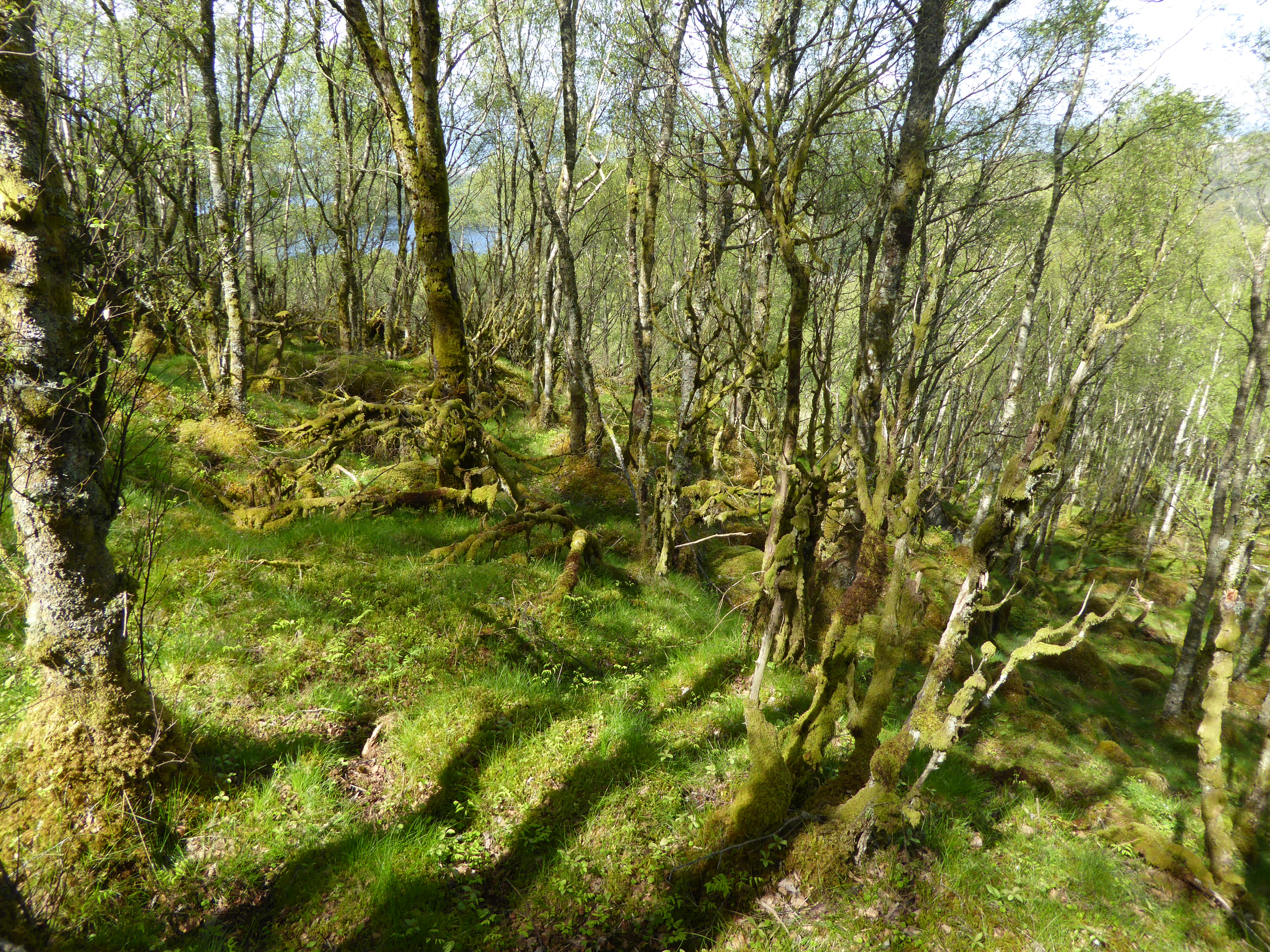 typisk blåbærbjørkeskog (T4-1) fra Strand i Ryfylke 150 m o.h som ikke klare tegn på at den tidligere har vært åpen mark, f.eks. mangler einer helt.