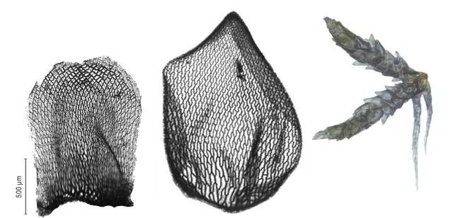 Greinknipper løst sammenstilte, med 2 utstående og oftest 2–3 stengeltilliggende hengegreiner. Utstående greiner sylindriske, smalt tilspissede. Greinblad ikke-rekkestilte, bredt eggformede, tett taklagte til noe utsperrede. Stengel brun til brunsvart. Stengelblad bredt rektangulære, varierende orientert på stengelen; bladspiss bredt avrundet og småfrynset. N = 19. Dioik. Sporehus nå og da. Sporemasse gulbrun.