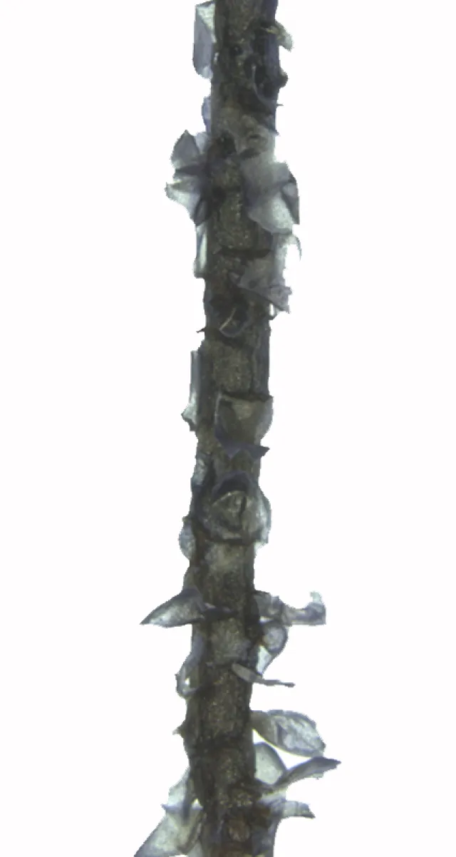 Stengelblad og greinblad til venstre. Greinknippe til høyre.