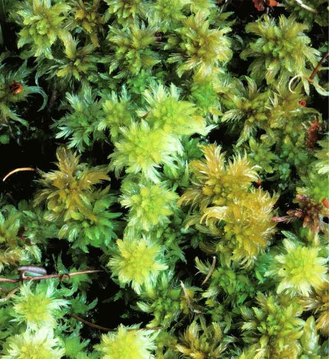 Grønntorvmose Sphagnum viride (vi) sammen med vasstorvmose S. cuspidatum (cu) og lurvtorvmose S. majus subsp. majus (mam)